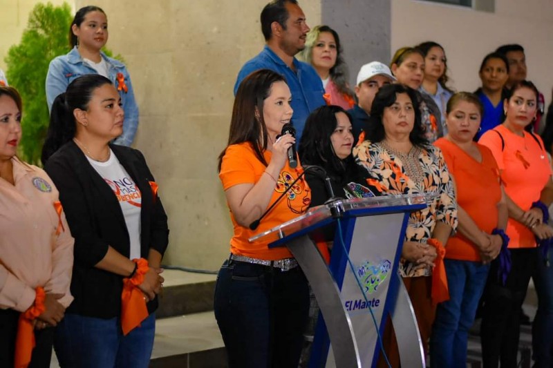 Dentro del programa establecido coordinando acciones con el Instituto de Municipal de la Mujer, la presidente del DIF-Mante tuvo a su cargo el encendido del emblemático color Naranja en el edificio de la presidencia municipal.