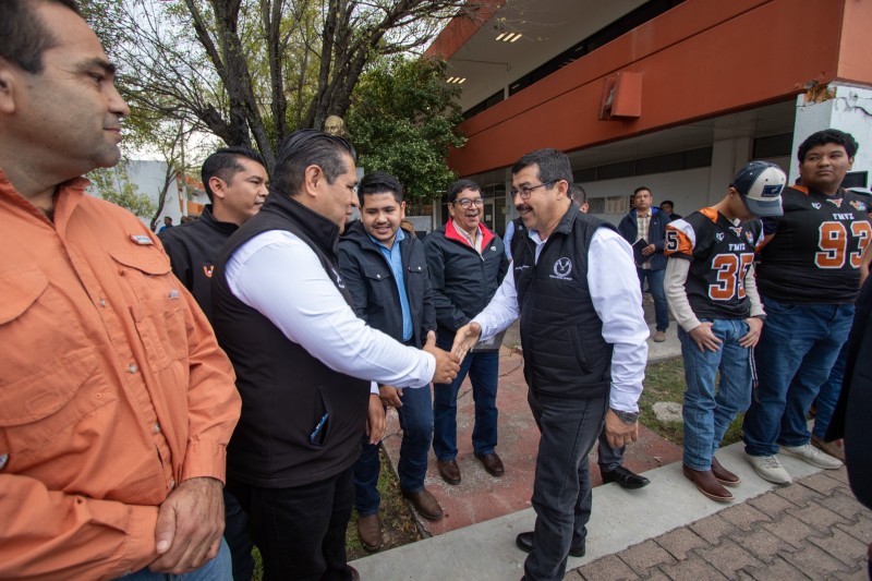 Acompañado por el Dr. Flaviano Benavides González, director de la FMVZ, el rector presidió reuniones con el personal docente y administrativo, donde se informó de los diversos programas, entre los que destacan la certificación académica, la vinculación institucional y el desarrollo de áreas como laboratorios, hospitales de pequeñas y grandes especies, rastro, entre otros.