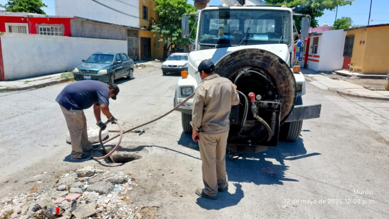 Este mediodía, personal de la COMAPA con la utilidad de un camión Vactor, trabajó con denuedo intentando desazolvar las líneas principales del drenaje sanitario en la calle Justo Sierra y Ficus de la colonia Arbustos, con el propósito de permitir el libre correr de las aguas negras por el sub colector de este sector.