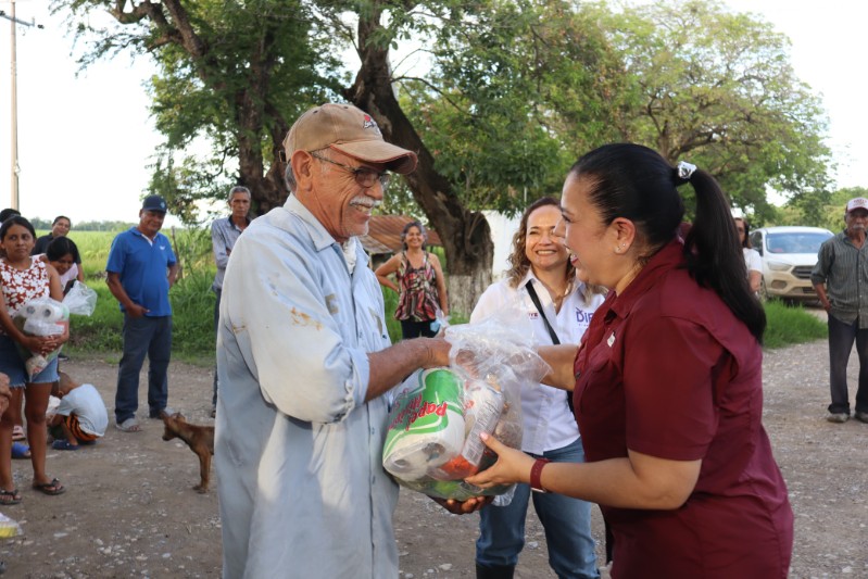 Para ello, la alcaldesa Chío de la Garza cumplió con un extenso recorrido por el municipio, estando presente en comunidades rurales de la zona cañera y temporalera, a efecto de hacerles llegar oportuno apoyo alimentario.