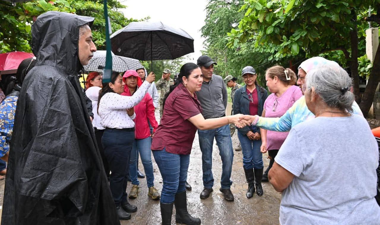 El Mante, Tamaulipas, México / Junio 30 de 2025 / Jesús Avila Murillo / Como parte del protocolo de Protección Civil, la presidente municipal Martha Patricia Chío de la Garza en compañía de elementos de la SEDENA, realizó este mediodía un recorrido por algunas colonias susceptibles de afectación a causa de las abundantes aguas qué está dejando «Barry» en esta región de El Mante.