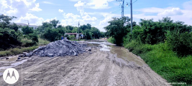 El Mante, Tamaulipas, México / Septiembre 22 de 2025 / El lamentable estado de la calle Tenamaxtlan, la única vía de acceso al Fraccionamiento «Jalisco», ha llevado a la desesperación a sus residentes.