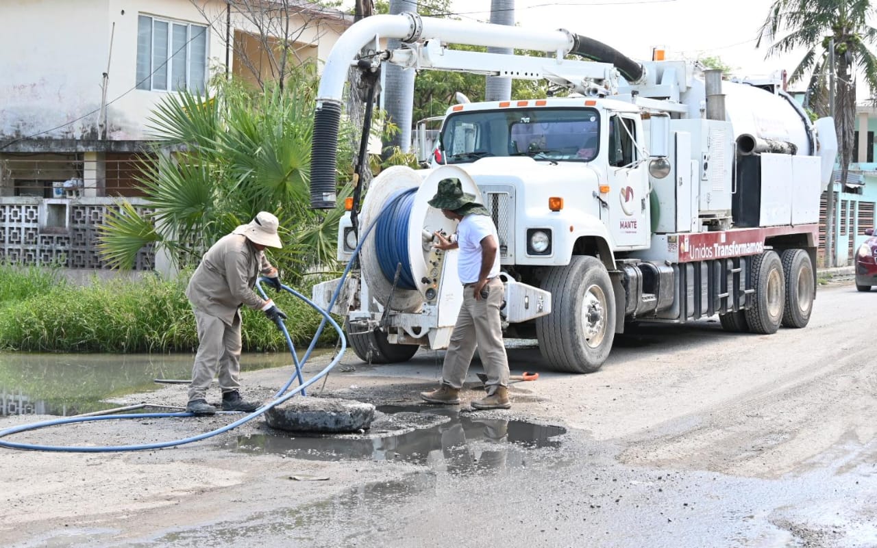De manera simultánea, el equipo vactor se encuentra activo en calles de la colonia Arbustos, llevando a cabo acciones de limpieza y desazolve para asegurar el correcto funcionamiento del sistema de drenaje sanitario.