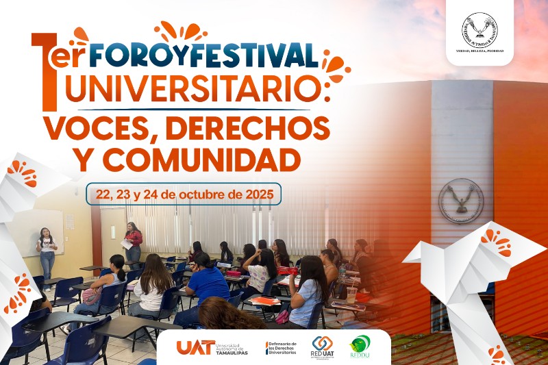 Ciudad Victoria, Tamaulipas, México / Octubre 07 de 2025 / La Universidad Autónoma de Tamaulipas (UAT) será sede del Encuentro de la Red de Organismos Defensores de los Derechos Universitarios (REDDU), el cual se llevará a cabo del 22 al 24 de octubre. En este marco, se realizará también el Primer Foro y Festival Universitario: Voces, Derechos y Comunidad.