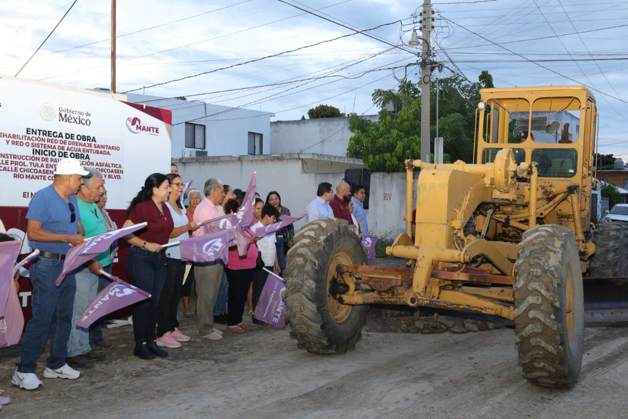 El Mante, Tamaulipas, México / Octubre 09 de 2025 / El Ayuntamiento de El Mante, bajo la dirección de la presidente municipal Martha Patricia Chío de la Garza, impulsa las obras integrales de pavimentación que resuelven un problema de contaminación ambiental y salubridad que afectaba a familias de tres colonias por más de dos años.