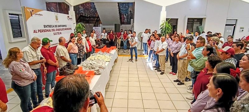 El Mante, Tamaulipas, México / Octubre 16 de 2025 / Este jueves se llevó a cabo la distribución de uniformes a los 274 empleados municipales adscritos al Sindicato Único de Trabajadores y Empleados del Municipio (SUTEM).