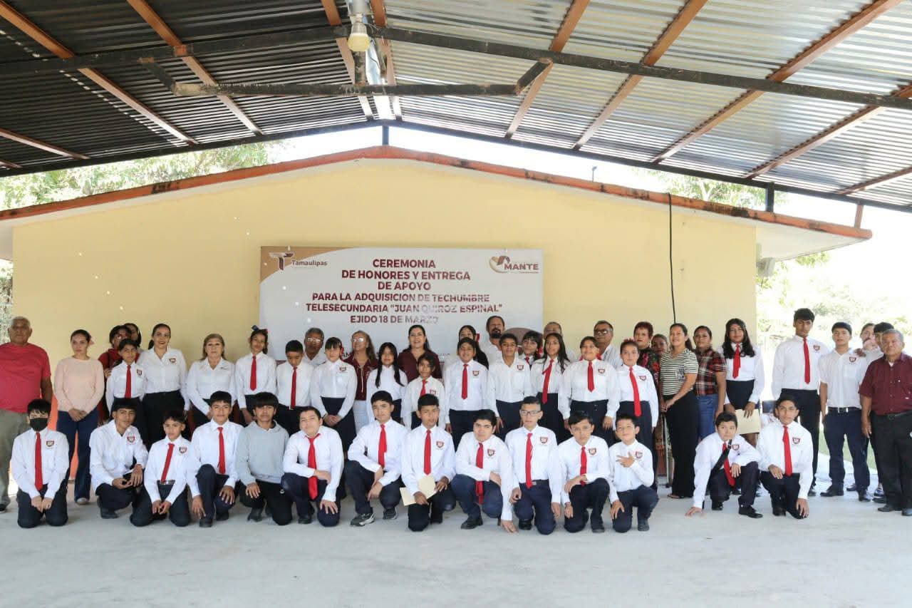 La alcaldesa de El Mante, licenciada Martha Patricia Chío de la Garza, visitó personalmente la Telesecundaria «Profesor Juan Quiroz Espinal» para confirmar la entrega del apoyo necesario.