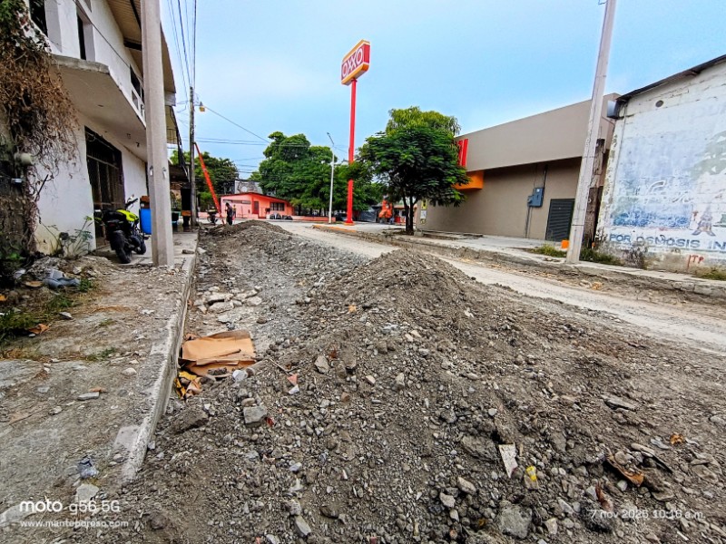 El Mante, Tamaulipas, México / Noviembre 07 de 2025 / Una breve suspensión se ha registrado en los trabajos de pavimentación integral que se llevan a cabo sobre la calle Xicoténcatl en la colonia Núñez.
