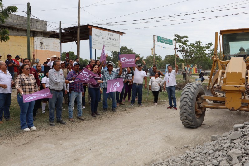 El Mante, Tamaulipas, México / Noviembre 12 de 2025 / En un esfuerzo coordinado con la comunidad, la presidente municipal Martha Patricia Chío de la Garza dio el banderazo de inicio a los trabajos de rehabilitación de vialidades principales en el ejido San Martín Caballero.