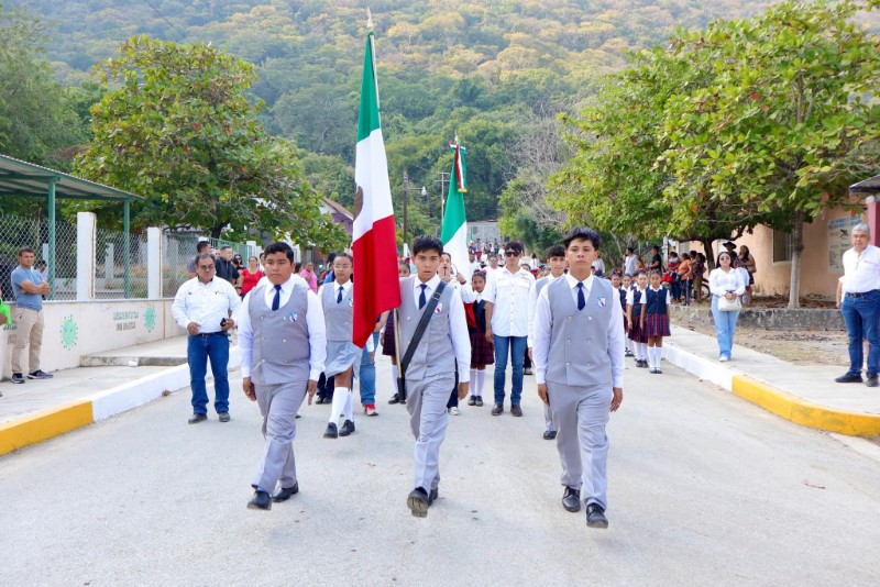 La Jefa de la Comuna presidió tanto la ceremonia cívica como el tradicional Desfile Revolucionario, acompañada por el delegado municipal y los directores de las diversas instituciones educativas locales.