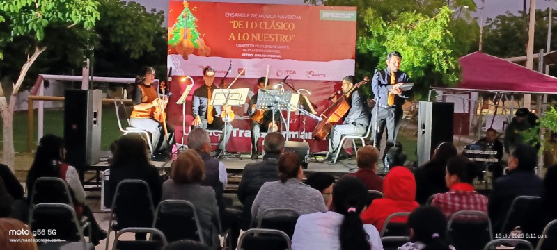 * El Cuarteto de Cuerdas «Marfil» ofreció un ensamble navideño especial en la colonia Arbustos del Infonavit, destacando el significado cultural de la temporada.