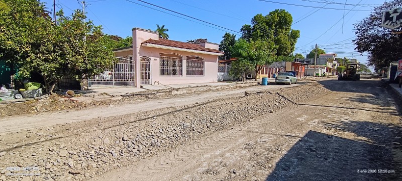El Mante, Tamaulipas, México / Enero 03 de 2026 / El Ayuntamiento 2024-2027 encabezado por la alcaldesa Martha Patricia Chío de la Garza, intensifica los trabajos de modernización urbana sobre la calle Paniagua, en el tramo comprendido entre el bulevar Pablo L. Sidar y la calle Morelos.