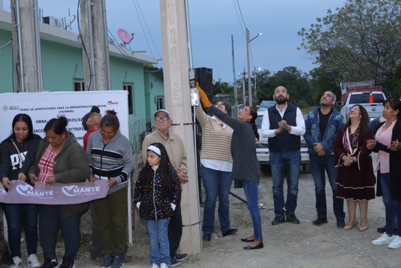 El Mante, Tamaulipas, México / Enero 18 de 2026 / La presidente municipal Martha Patricia Chío de la Garza inauguró la ampliación de la red eléctrica en Congregación Quintero, una obra que beneficia a familias que viven al pie de la sierra.