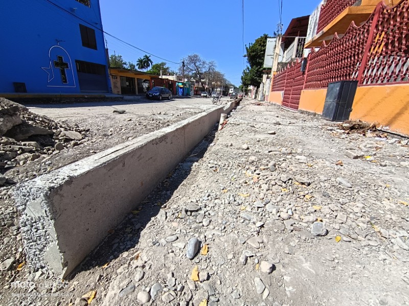 Actualmente, el proyecto ha entrado en una fase clave con la construcción de cordones y banquetas en ambas aceras del tramo comprendido entre la calle Morelos y el bulevar Pablo L. Sidar.