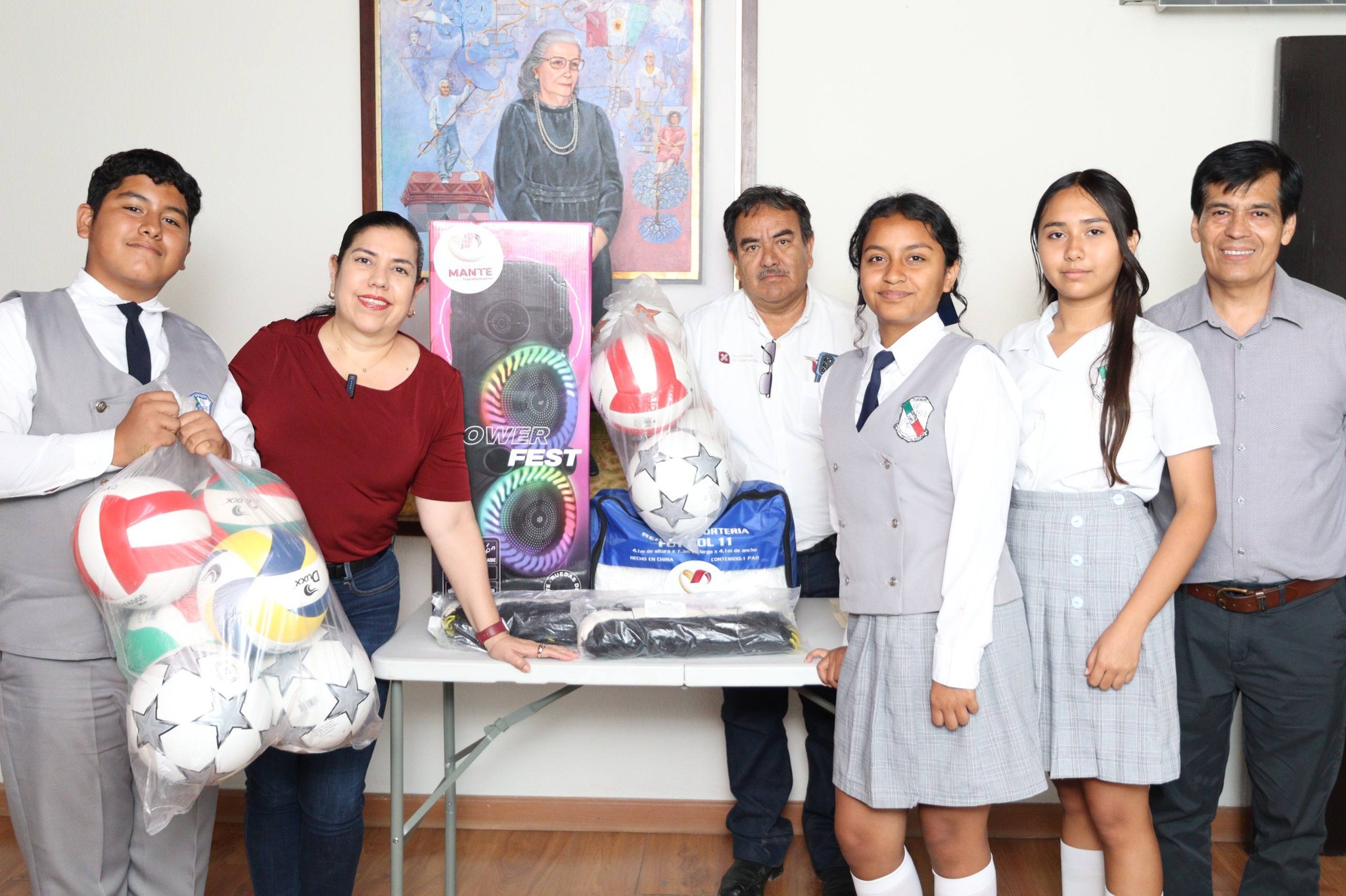 El Mante, Tamaulipas, México / 09 de Marzo de 2026 / Como parte de las acciones de fortalecimiento al sector educativo, el Ayuntamieto presidido por la licenciada Martha Patricia Chío de la Garza, hizo la entrega de material deportivo y equipo de sonido a estudiantes de la Telesecundaria “Justo Sierra” perteneciente a Congregación Quintero.